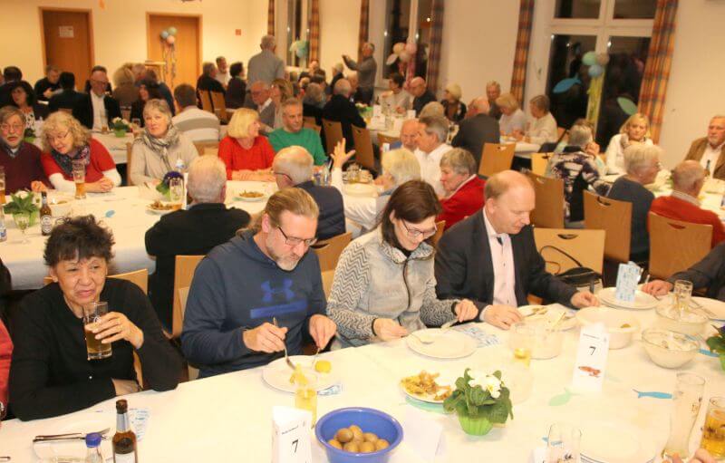 Der leckere Heringssalat stand dschon auf den Tischen. Den hatte die vereinseigene „Schnippeltruppe“ tags zuvor aus 850 Heringsfilets, Äpfeln Zwiebeln und Gewürzgurken sowie süßer und saurer Sahne, Joghurt, Milch und ein paar geheimen Zutaten hergestellt.