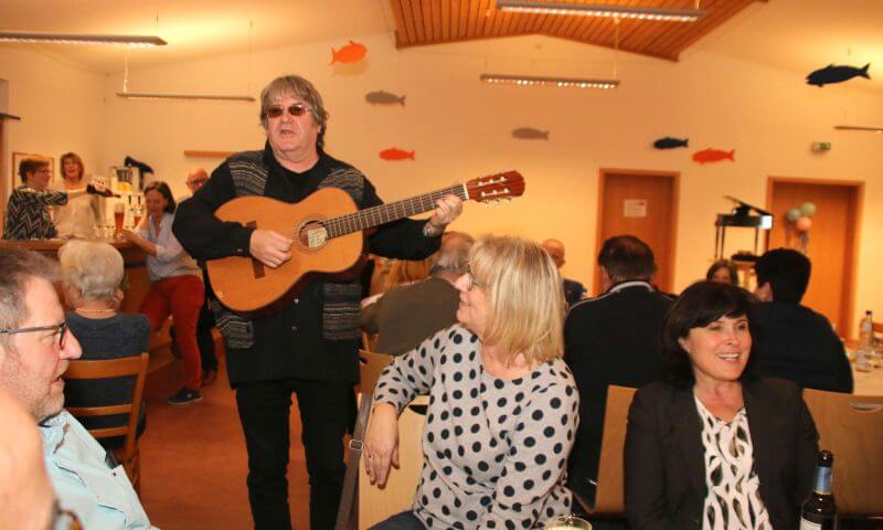 Humorvoll lies der Hering das Vereinsleben im letzten Jahr Revue passieren, erinnerte an den großen Hausputz ebenso wie an die Mitglieder, die bei einer Wanderung „dem falschen Anorak gefolgt sind.“ Nach dem dreifachen „Ski Heil“ kündigte Adam einen musikalischen Überraschungsgast an, der allerdings bei den Stammgästen des Heringsessens ein alter Bekannter ist.