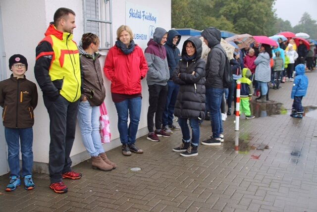 „Alle auf einmal, das geht nicht“, sagt Zydek. Zu den Glücklichen, die gleich rein dürfen gehört die Familie Müller aus Gießen. „Wir kommen gerne hier her. Bei uns gibt es so was nicht“, meint Mutter Esther, während Sohn Luc (11) nach Snowboards schaut. Sein zwei Jahre jüngerer Bruder Tom hat schon ein paar Skistöcke in der Hand. Vater Torsten hält nach Skiern für den Nachwuchs Ausschau.