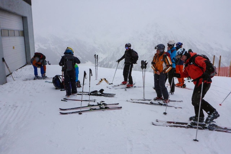 Der Freitag stand dann ganz im Zeichen von wenig Aufstiegsmühen aber viel Abfahrtsspaß. Wir gönnten uns einen Tagesskipass für das gesamte Kleinwalsertal. Die Skisafari konnte beginnen. Wir starteten mit der ersten Gondel des Tages an der Walmendinger Horn Bahn unweit unseres Hotels. Von der Gipfelstation ging es gleich rasant an der Oberen und Unteren Walmendingeralpe vorbei zur Talstation der Ifen Lifte. Die Lifte brachten uns zum Hahnenkopf, um vor der Mittagspause noch ein paar Abfahrten abseits der Pisten in die Hänge zu Zaubern. Wie angekündigt, verschlechterte sich das Wetter und es begann zu schneien. Da kam die Abfahrt vom Ifen Skigebiet über den Gottesacker Richtung Wäldle nach der Mittagspause genau richtig. Die Felsen und Kiefern gaben uns genug Kontrast, um auch diese Abfahrt zu genießen. Im Wäldle stiegen wir in den Skibus zur Kanzelwandbahn. Mit der Seilbahn ging es dann wieder bequem bergauf. Von der Gipfelstation querten wir geschwind in die Buckelpiste unter dem Zweiländer Lift. Diese präsentierte sich zur unserer Freude aber heute in zerfahrenem aber lockerem Pulverschnee. Nach der kurzen Liftfahrt mit der Zweiländerbahn gingen wir die letzte große Abfahrt an. Davor stand aber erst einmal ein kleines Stück laufen an. Mit Skiern am Rucksack stapften wir in griffigen Tritten zum Sattel unterhalb des Kanzelwandgifel. Von dort ging es über unverspurte Hänge ins Warmantsgundtal, ehe wir die letzten Gondeln nutzen, um wieder nach Rietzlern zurück zu kommen. Die letzten Nachzügler mussten sogar noch 7 Minuten warten, bis sie in die allerletzte Gondel einsteigen konnten.