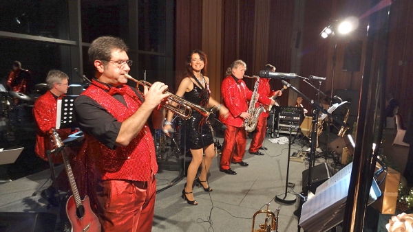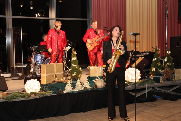 Doch auch das Gloria-Reuter-Sextett begeisterte immer wieder mit kurzen Showeinlagen. Verstärkt wurde die Band durch die Sängerin Gloria, die mit ihren Darbietungen von Tina Turner gesanglich und auf dem Saxophon das Publikum überzeugte.