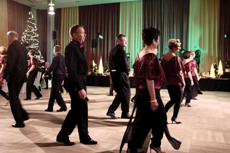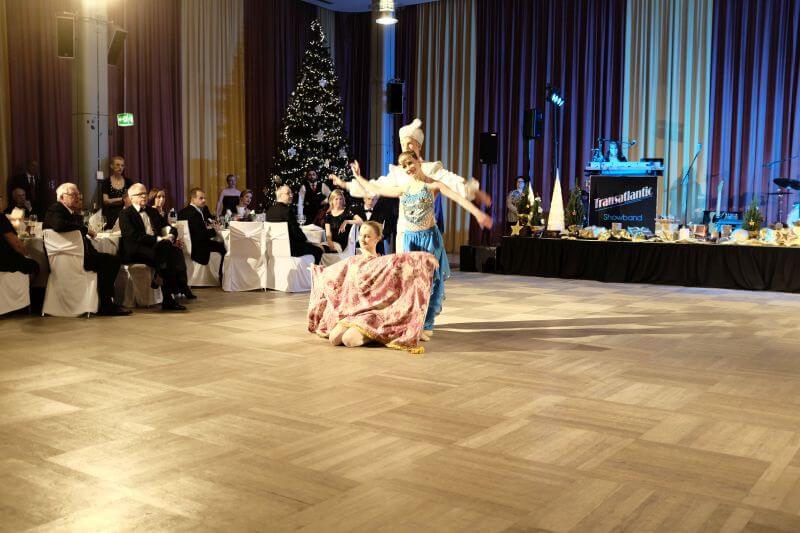 Mit weihnachtlichen Klängen wurde der Abend im großen festlich geschmückten Saal, der in Gold- und Kupfertönen erstrahlte, eröffnet. Der 1. Vorsitzende des Skiclub, Dirk Pfannmüller begrüßte mit einer kurzweiligen Rede die Ballgäste. Im Anschluss daran übernahm Sieghard Höhne das Mikrofon und führte durch einen vergnüglichen Abend. Die Tanzgruppe des Skiclubs Friedberg bot mit ihrer Darbietung zu italienischen Klängen einen ersten kleinen Einblick in die inzwischen sehr vielfältigen Tanzformen.