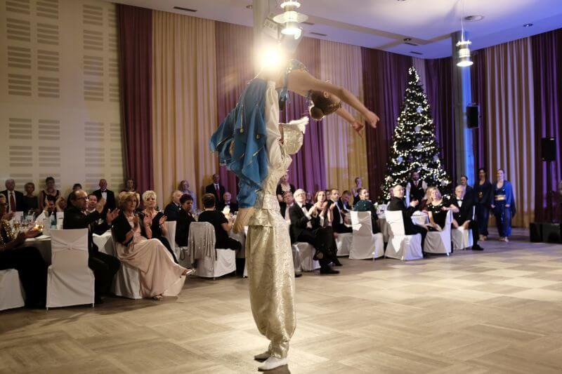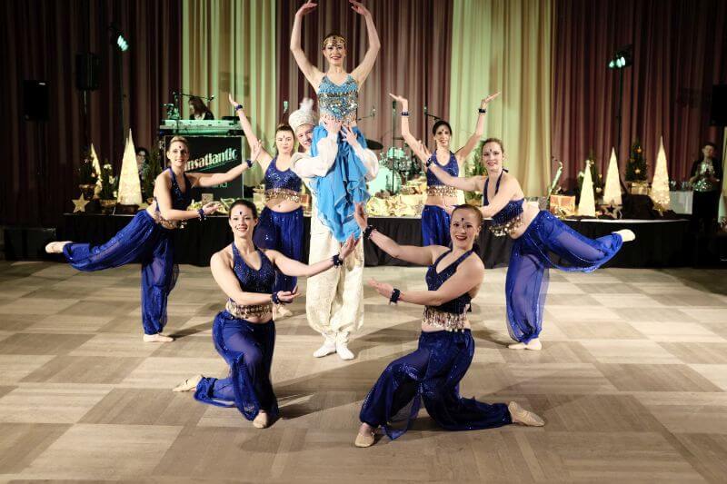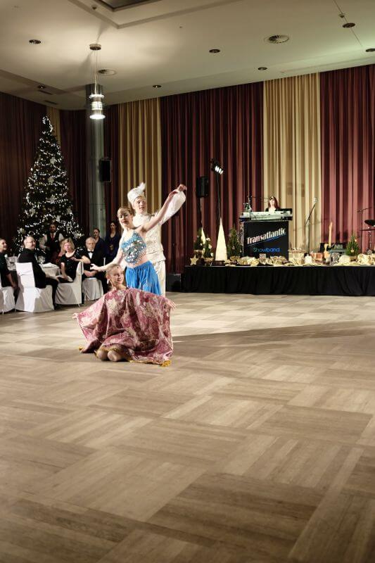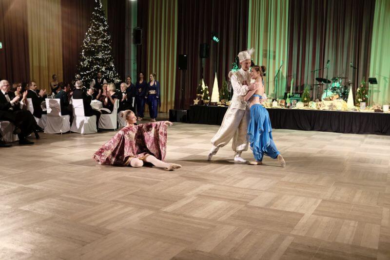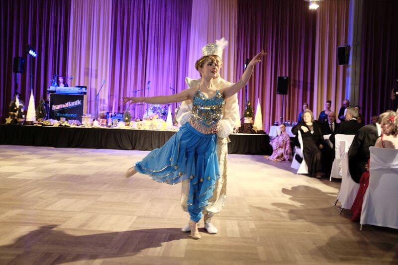 Kulinarisch wurden die Besucher wieder vom Team des Hotel & Conference Centre Bad Nauheim verwöhnt mit einem vielfältigen Salatbuffet, diversen Vorspeisen, einer köstlichen Suppe, einem reichhaltigen Hauptspeisen- und Dessertbuffet. Nicht nur Ballbesucherinnen, sondern auch Ballbesucher konnten sich vom Team der Kosmetikerinnen des Salihauses ihr Make up auffrischen lassen. Mit ihren Darbietungen aus Aladin verzauberten die Mitglieder des Ballettstudios Monika Rogoschinski die Zuschauer und erhielten dafür viel Applaus. Am späteren Abend entführten Emile und Yagmur von der Tanzschule Intango das Publikum in die Welt des Tango Argentino und ernteten ebenfalls begeisterten Applaus. Tanzen kann nicht unterschiedlicher sein.