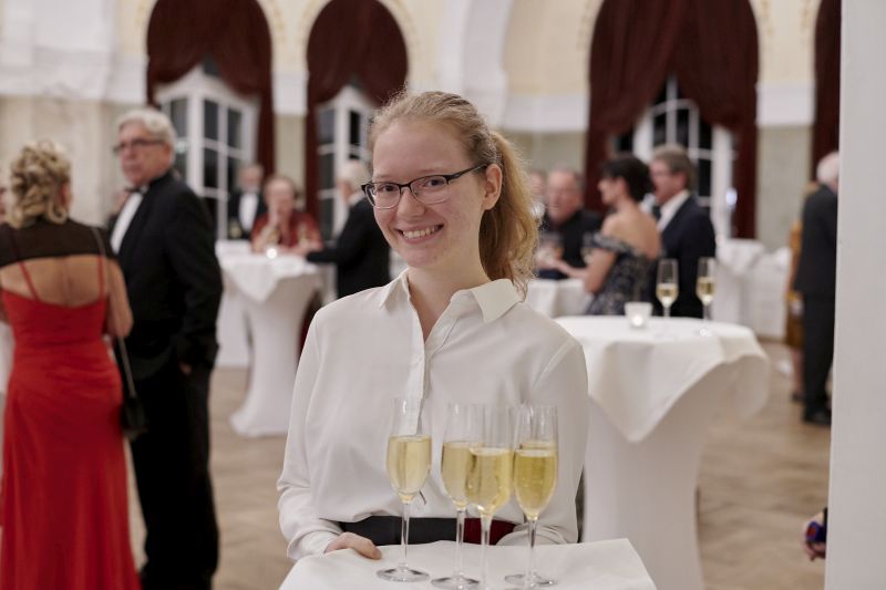 Bei einem Glas Sekt im Spiegelsaal wird der Tanzabend stilvoll mit einstimmender Hintergrundmusik und netter Unterhaltung eröffnet.