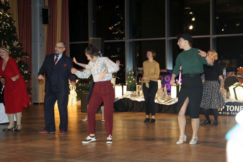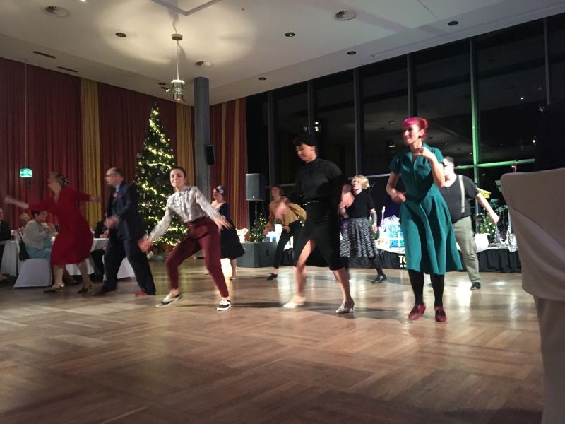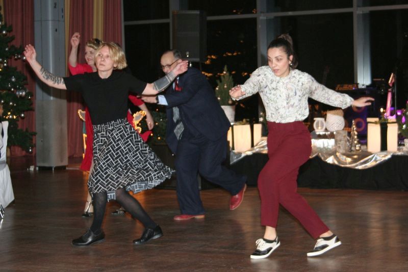 Weiter im Programm ging es mit der Gruppe „Swing Jets“ aus Offenbach, die die Gäste in die Welt der goldenen Zwanziger des vergangenen Jahrhunderts entführte und mit gekonnten Moves zu Swing- und Jazzmusik performte. Auch der spontan durchgeführte Schnellkurs animierte zahlreiche Ballgäste sich in den schwungvollen Bewegungen des Swing Tanzes einzufühlen.