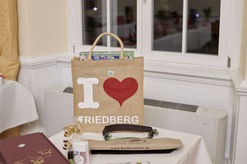 Brunch- und SPA Gutscheine vom Hotel Dolce, Gansessen im Golfclub Friedberg sowie ein Sektempfang und ein weiteres Gansessen im Teichhaus in Bad Nauheim und wohlgefüllte Geschenkkörbe von Tegut Friedberg und Edeka Koch. Über den Hauptpreis eine Herren- und Damenuhr des Juweliers Burck erfreute sich eine junge Frau, die die Herrenuhr auf Rückfrage mit einem Augenzwinkern gerne an ihren Bruder weitergeben wollte.
